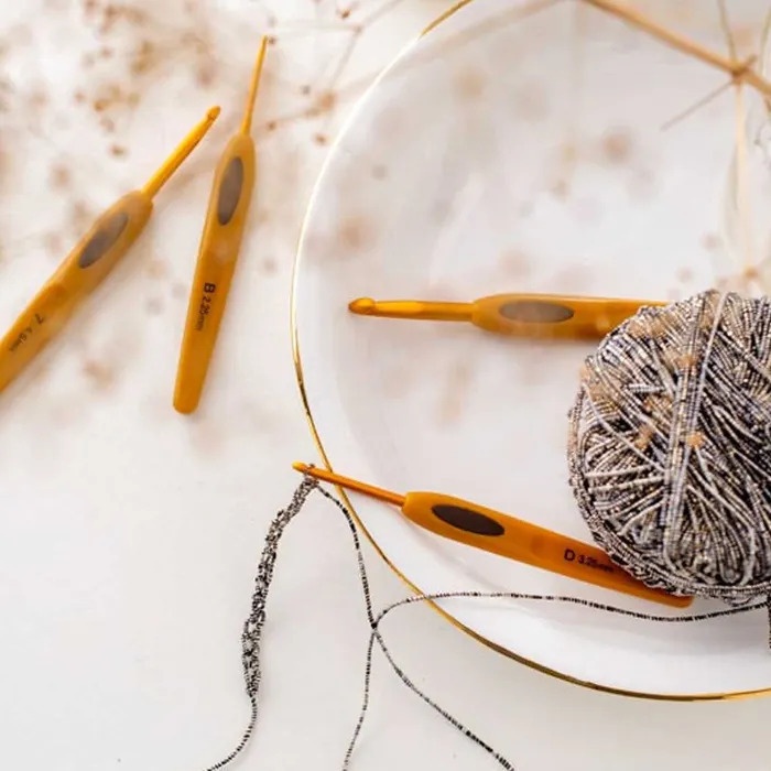 • La pointe permet de réaliser des travaux de qualité, sa finition homogène couleur or fabriquée en métal est vraiment douce et vous permet de travailler les laines et les fils avec aisance.
