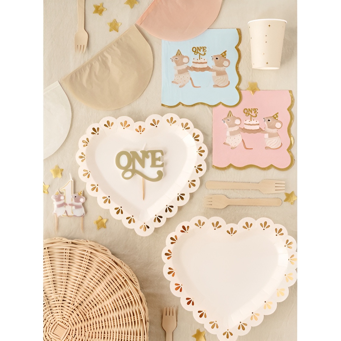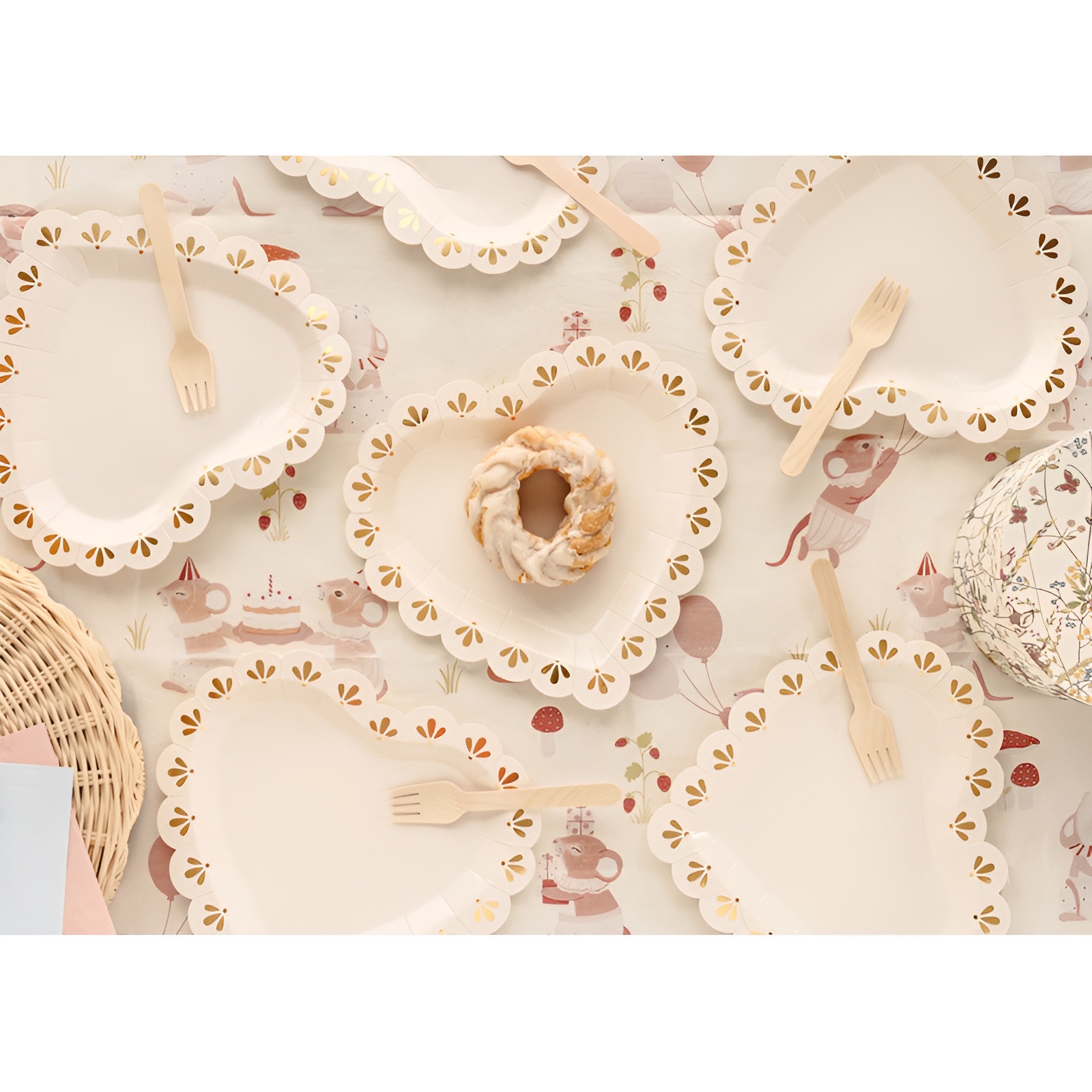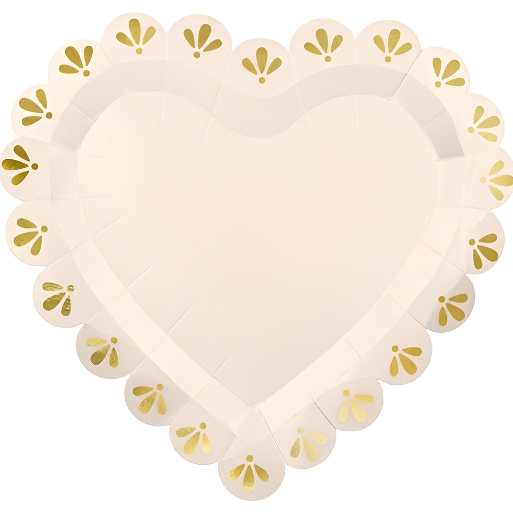 Assiettes en forme de coeur crème et doré - style élégant