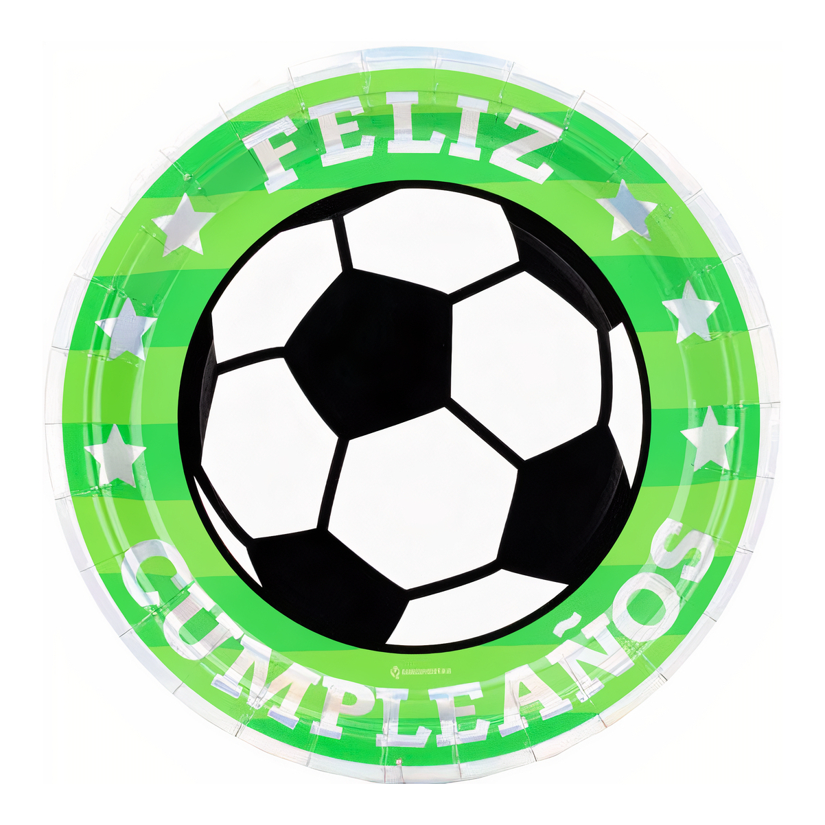 Assiettes iridescentes « Joyeux anniversaire » thème football 18 cm - lot de 8
