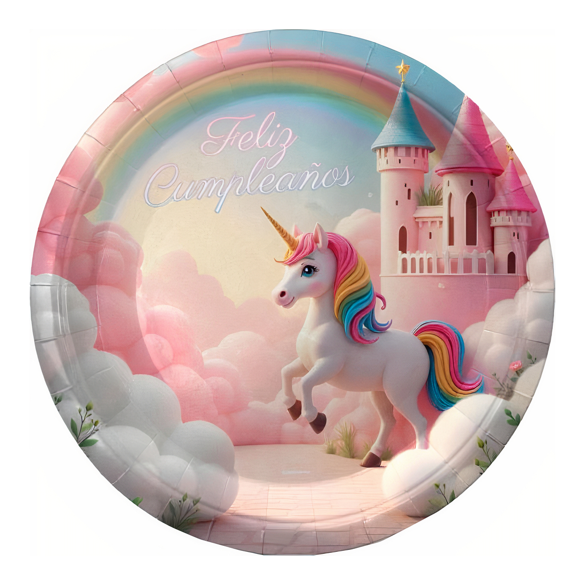 Assiettes licorne roses avec château - diamètre 18 cm - 8 unités