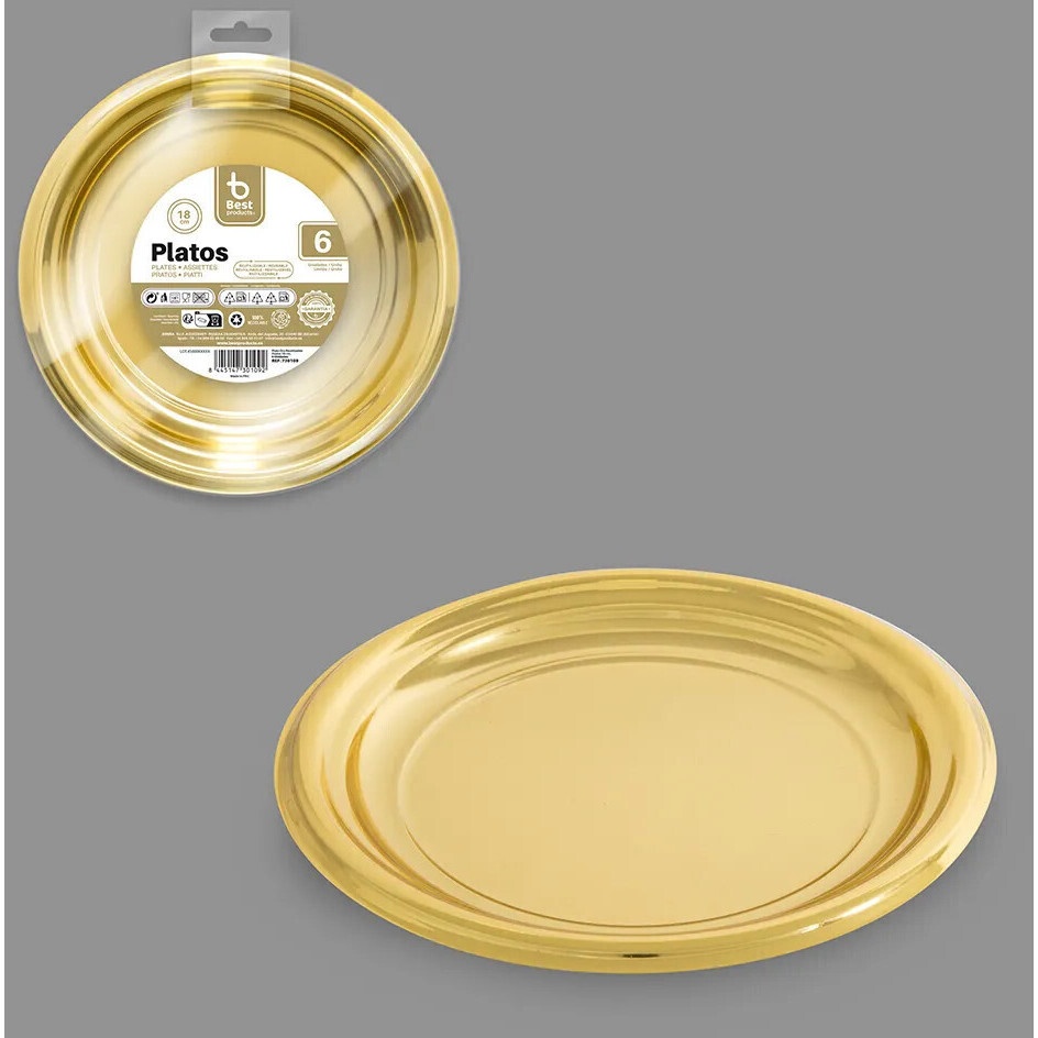 Assiettes en plastique carrées métallisées de 18 cm - 6 unités