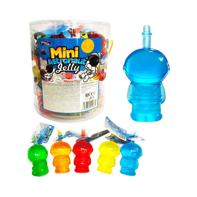 Ingrédients: eau, gélatine, régulateurs d'acidité (E330, E331), édulcorants (E950, E951, E955), arômes, conservateur (E202), colorants (E102, E110, E129, E133). Les colorants E102, E110, E129 peuvent avoir des effets sur l'attention des enfants.