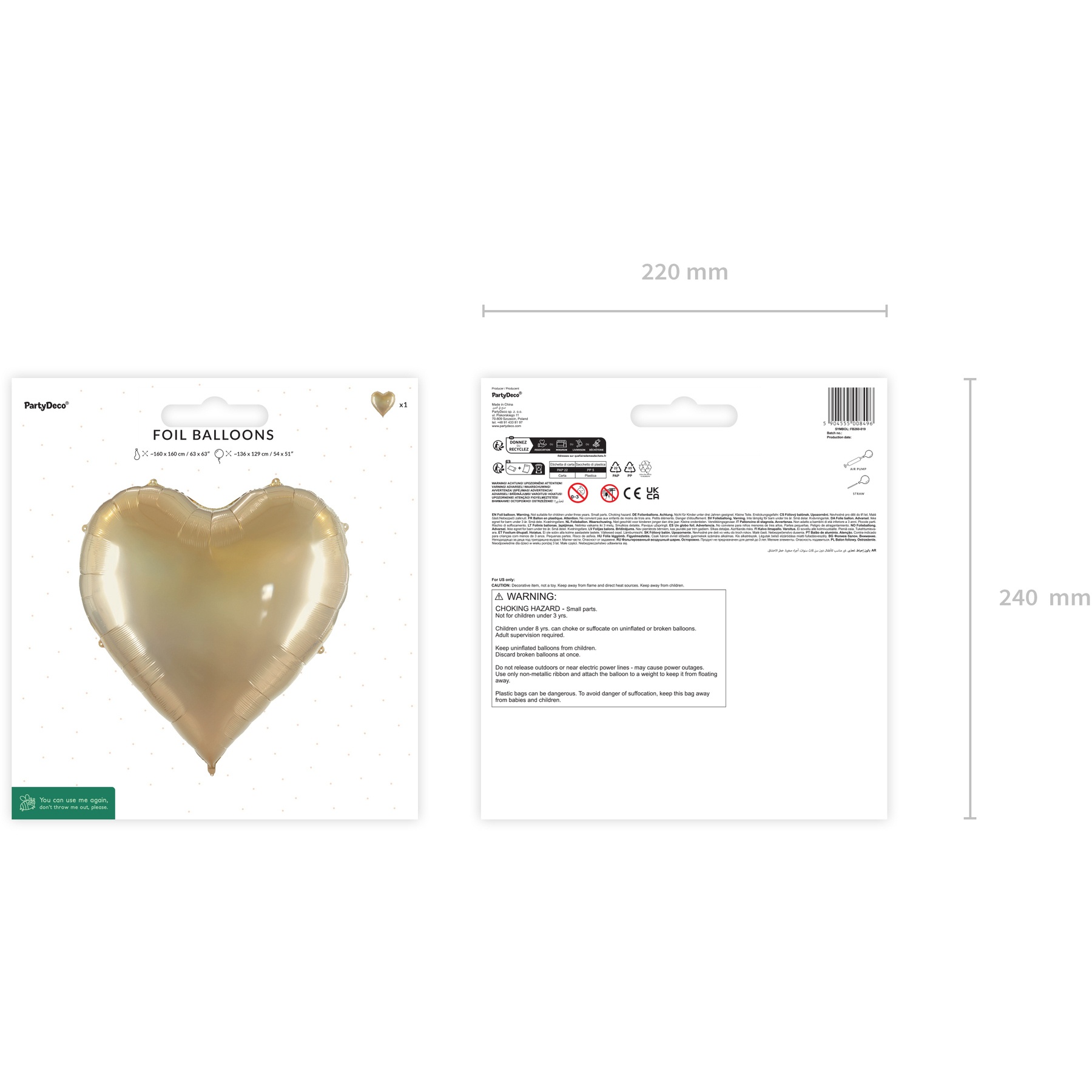 Ballon coeur XXL doré de 1,36 x 1,29 m