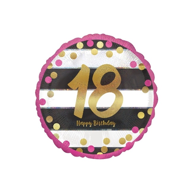 Un ballon avec un design très brillant qui apportera de la joie à toute fête d'anniversaire et qui combine les couleurs rose, noir et doré.