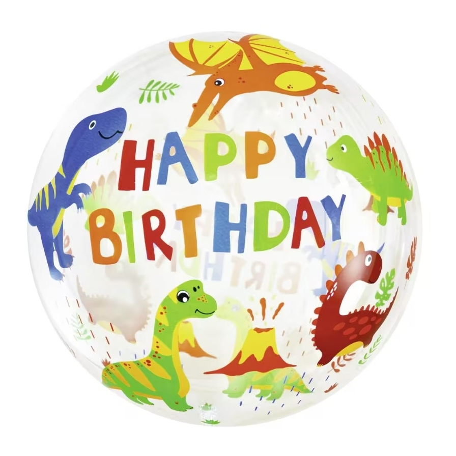 Ballon de dinosaure transparent "Happy Birthday" type bulle