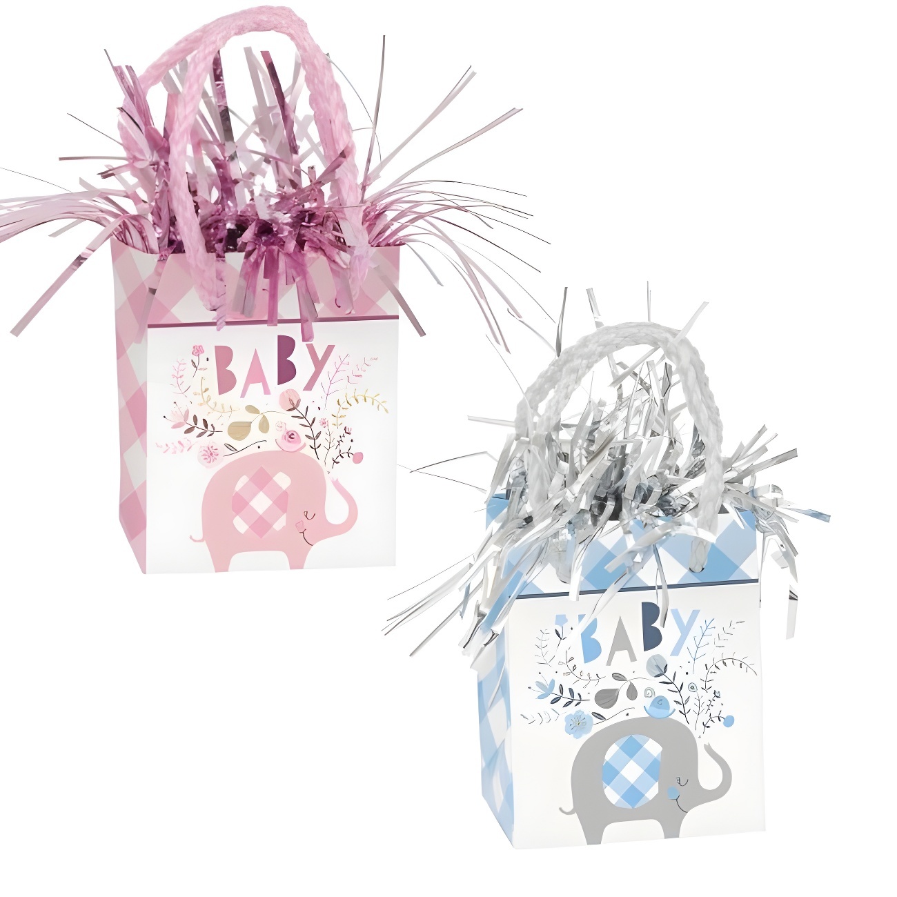 Poids pour ballons idéal pour décorer un bouquet de ballons lors de toute fête de baby shower. Les ballons sont attachés aux poignées et esthétiquement cela reste super joli.