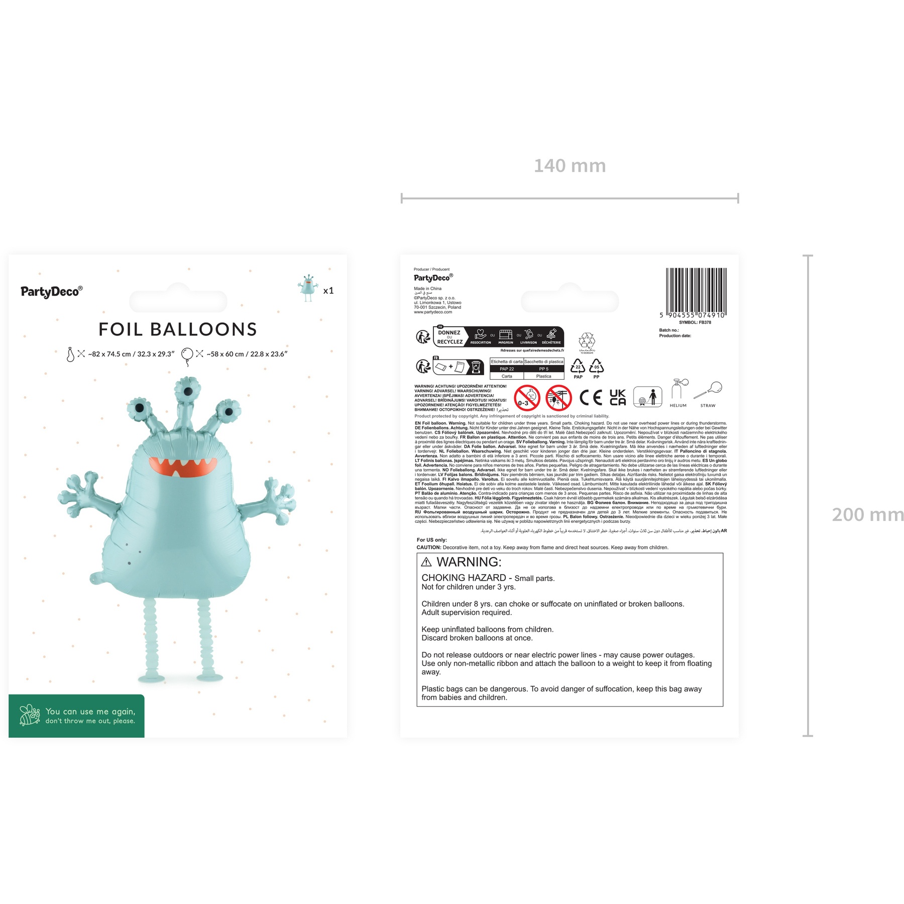 Compatible avec un gonflage à l'hélium pour un effet flottant et remarquablement visible. Parfait pour vos anniversaires et fêtes d'enfants, il apportera une touche originale et joyeuse à votre décoration.