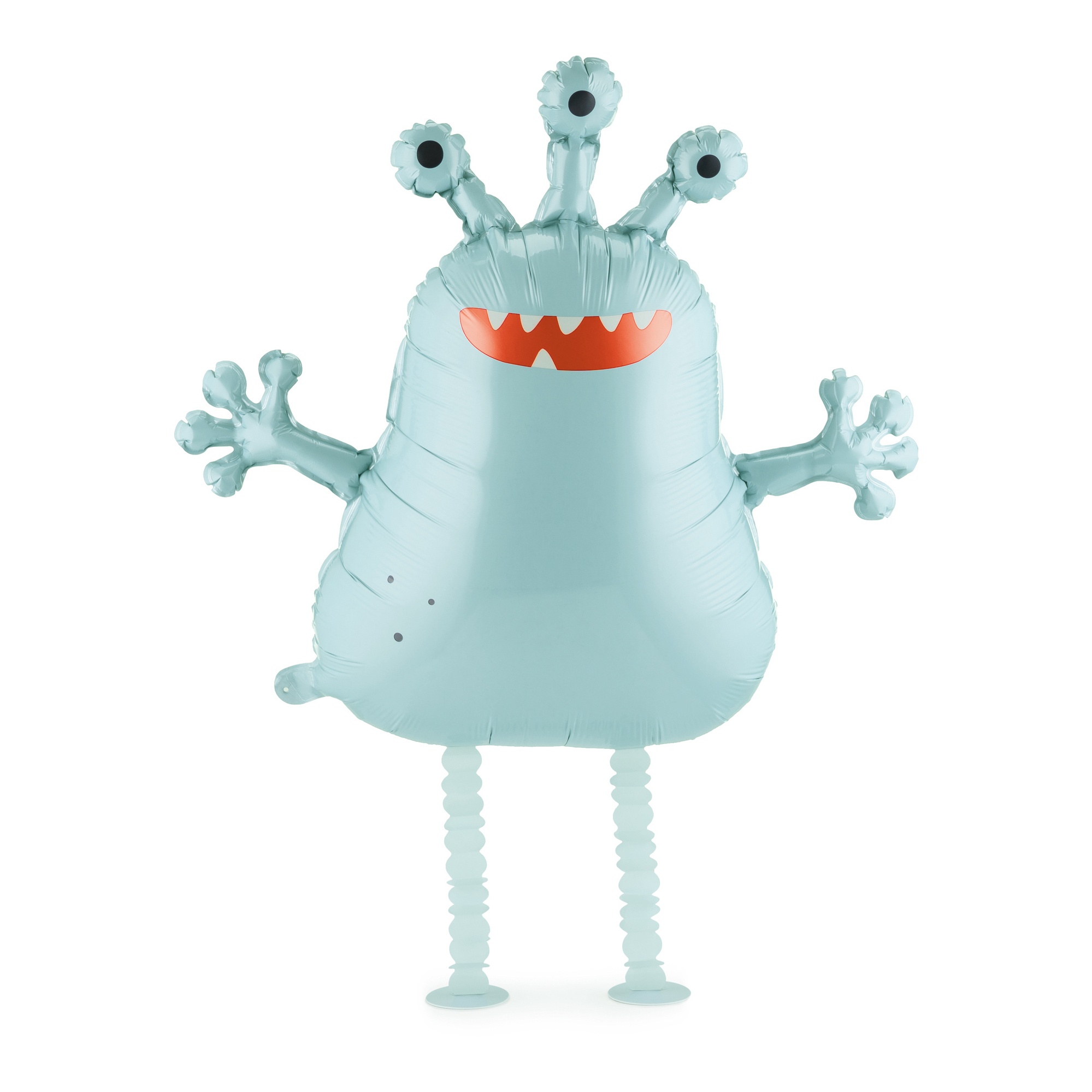 Ballon foil au design amusant d'un alien marcheur, dans un bleu poudré. Dimensions avant gonflage env. 82 x 74,5 cm ; après gonflage env. 58 x 60 cm. Hauteur des pattes env. 25 cm, pour plus de mouvement et de présence.