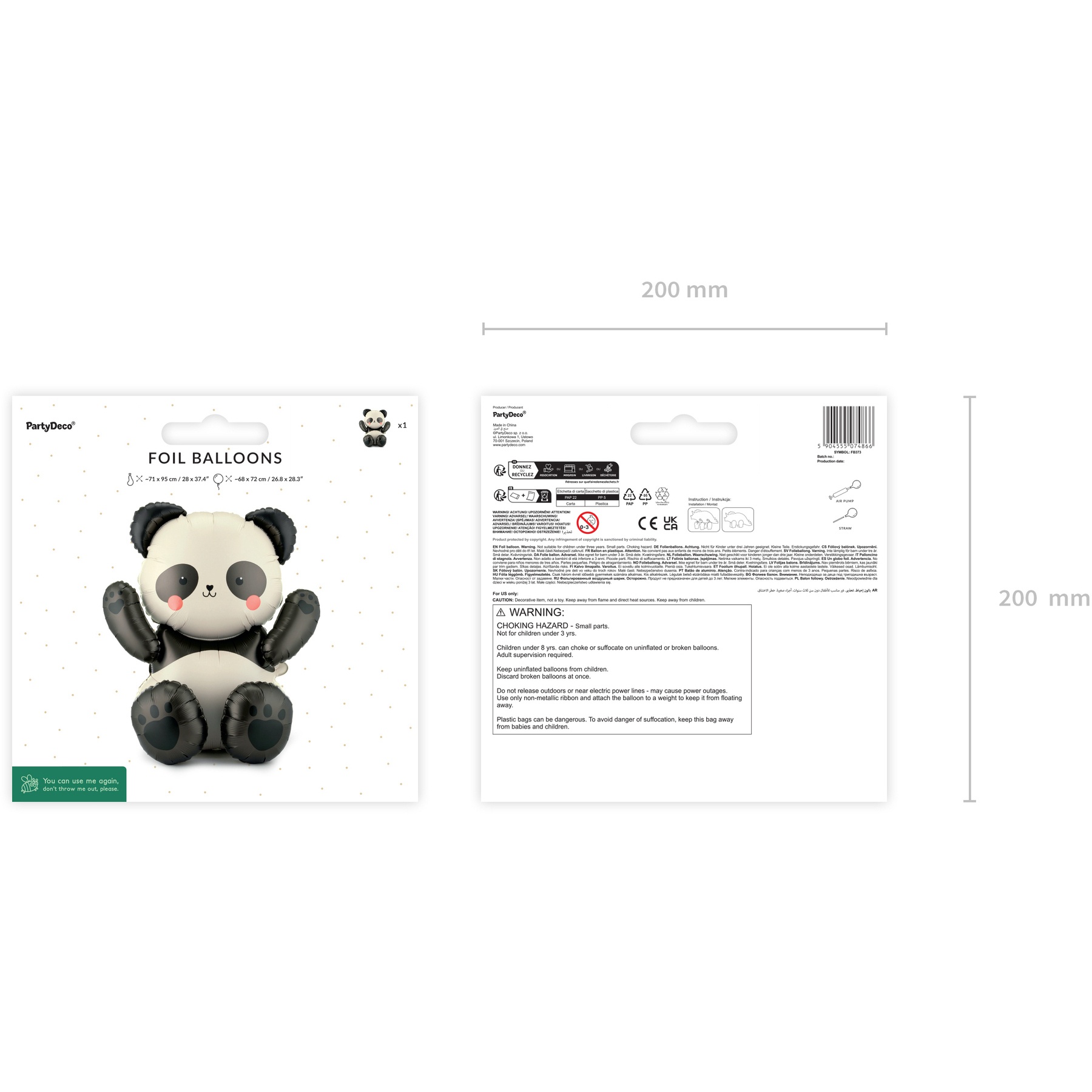 Ballon en mylar (foil) en forme de panda, tons beige et noir, au design tendre et très visible.