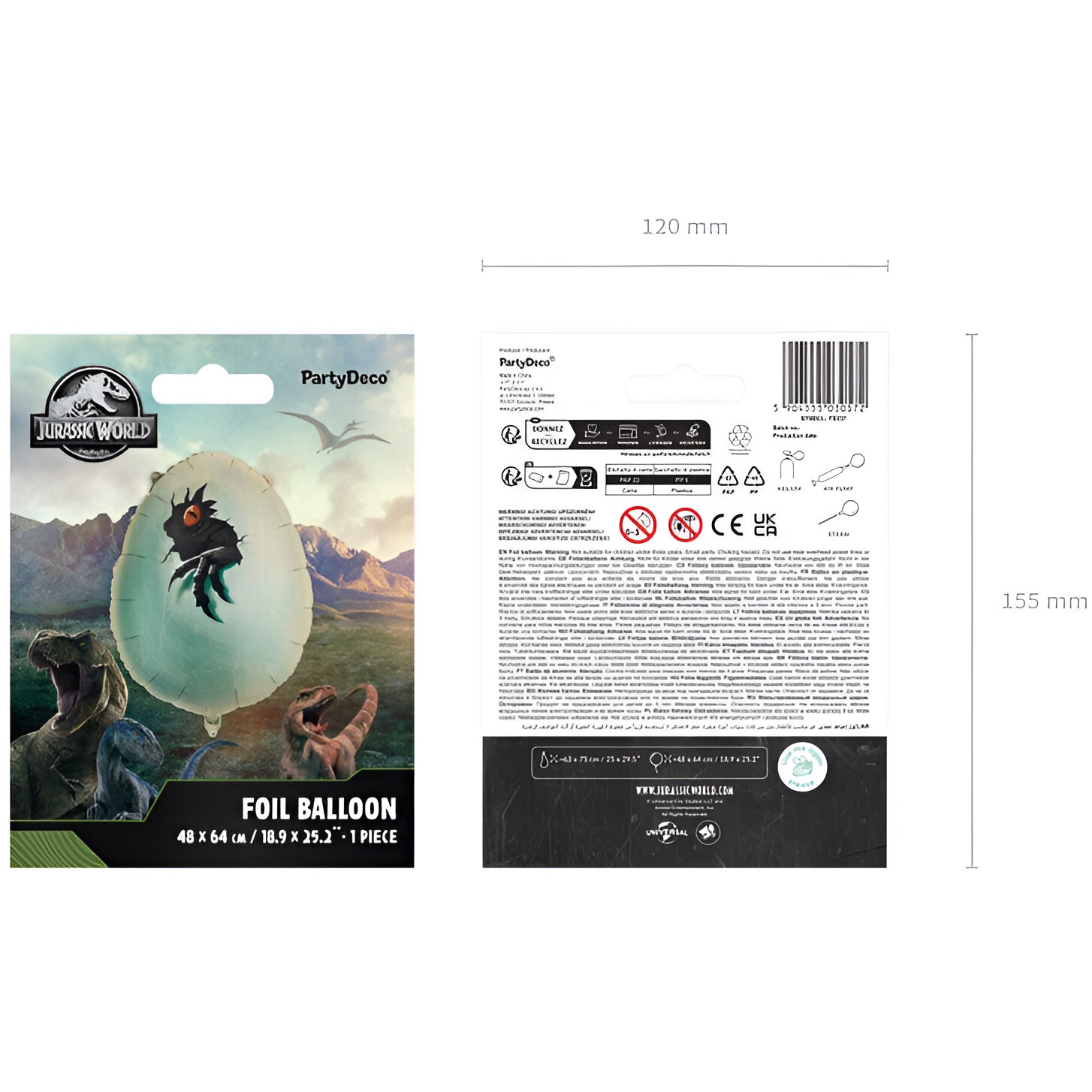 Ballon foil sous licence Jurassic World, conçu comme un oeuf de dinosaure avec une impression réaliste de l'oeil et de la griffe. Dimensions avant gonflage: env. 63 x 75 cm (25 x 29,5"). Dimensions après gonflage: env. 48 x 64 cm (18,9 x 25,2"). Convient pour le gonflage à l'air et à l'hélium ; le ballon est auto-scellant et possède des oeillets pour que vous puissiez l'accrocher et décorer facilement. Une paille est incluse pour faciliter le gonflage.