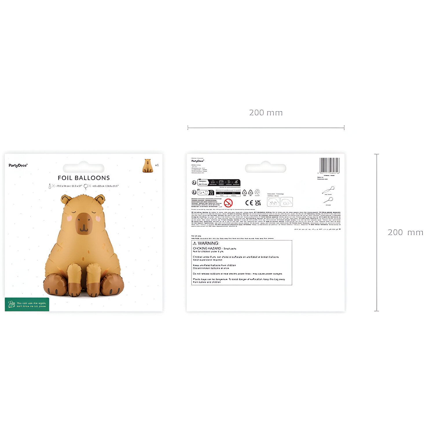 Ballon capybara au design kawaii, idéal pour créer une ambiance lors de vos fêtes d'enfants. Tons jaune foncé et beige avec finition brillante pour une touche sympathique et visible. Dimensions avant gonflage env. 79,5 x 94 cm ; après gonflage env. 63 x 80 cm. Conçu pour être gonflé à l'air, il se pose facilement comme élément décoratif sur tables, photobooths ou dans des coins thématiques.
