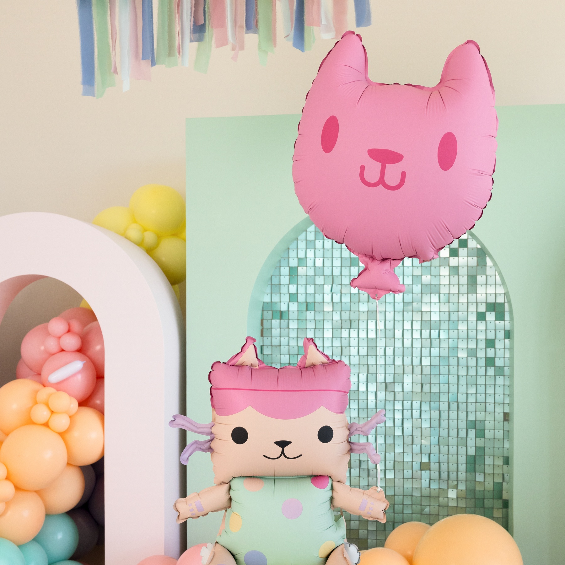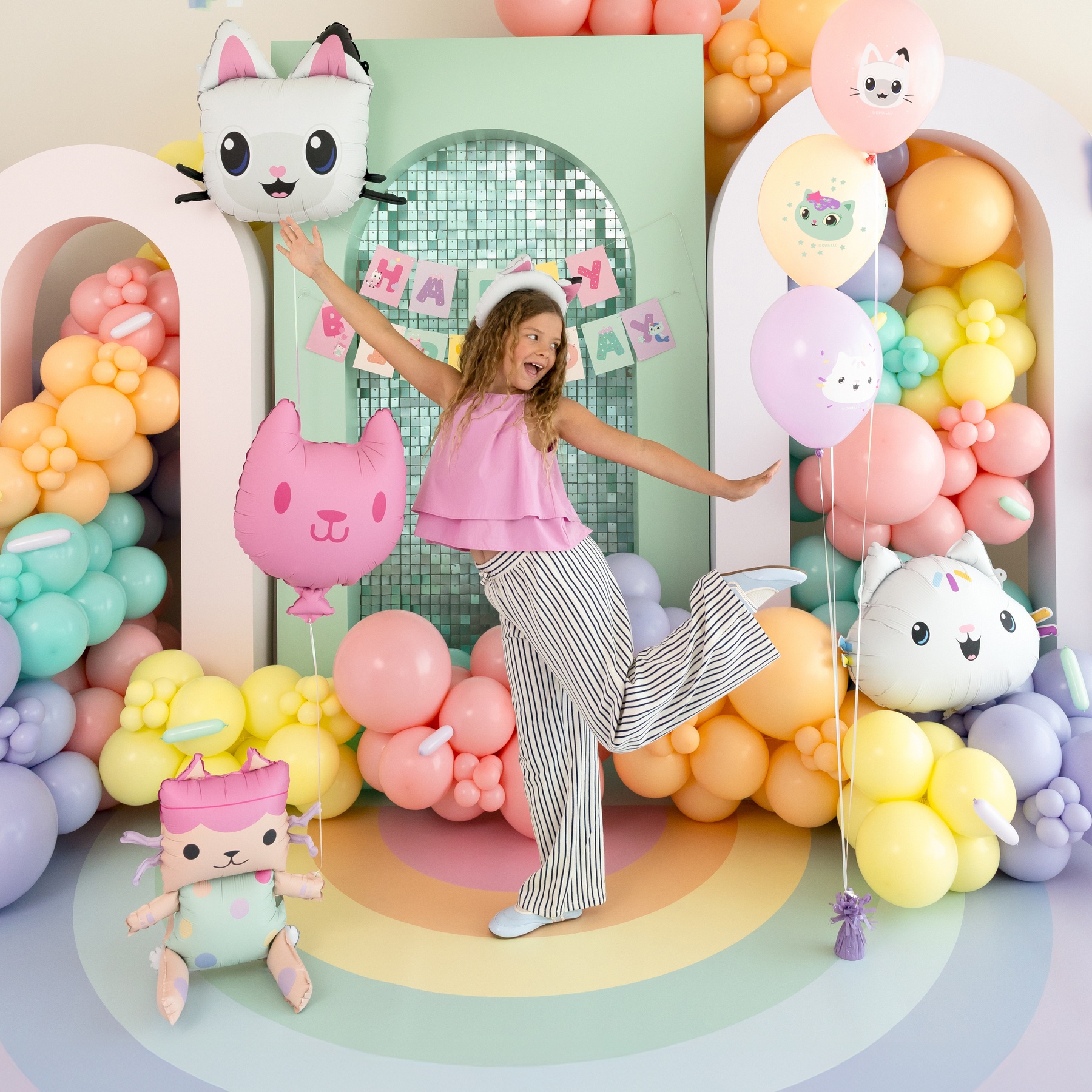 • Comprend deux ballons (baby box et chat), une corde et une paille.