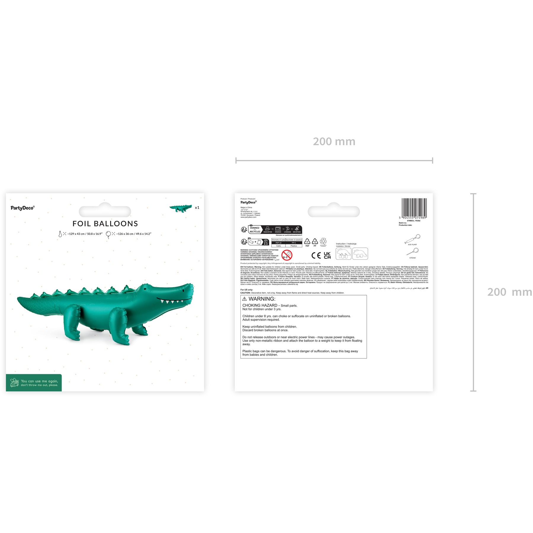 Ballon crocodile géant en vert foncé, parfait pour créer une ambiance saisissante sur le thème de la jungle. Sa silhouette allongée et tridimensionnelle capte l'attention et apporte une touche ludique et originale à toute décoration. Dimensions approximatives avant gonflage: 129 x 43 cm ; après gonflage: env. 126 x 36 cm. Conçu pour être gonflé uniquement à l'air, il constitue une pièce stable et remarquable qui servira de point focal lors de vos événements.