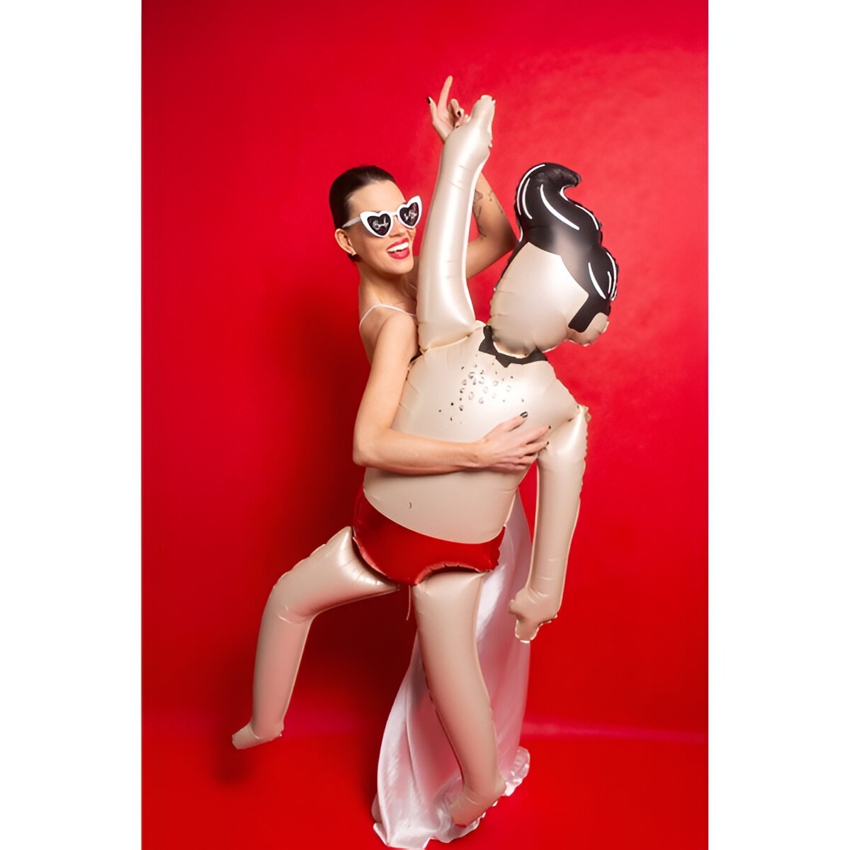 Ballon foil géant représentant la silhouette d'un homme dans des tons crème et rouge, avec cheveux noirs et détails amusants. À plat, il mesure environ 95 x 176 cm ; une fois gonflé, il atteint environ 64,5 x 159 cm. Il se gonfle à l'air ou à l'hélium pour s'adapter à différents montages et décorations. Il constitue un élément frappant et photogénique pour photocalls, anniversaires et célébrations, créant une atmosphère originale et ludique. Son design léger facilite sa mise en place et sa combinaison avec d'autres éléments de fête.