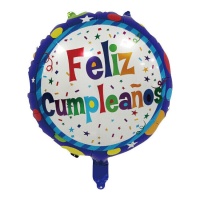 Ballon d'Anniversaire Heureux avec étoiles colorées de 45 cm