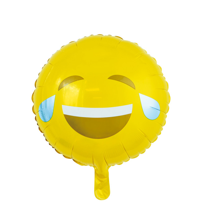 Adapté à tous les âges, ce ballon en papier aluminium se caractérise par sa forme et son dessin d'émoji riant, avec sa couleur jaune et des larmes bleues sous les yeux. Vous pourrez le gonfler à l'hélium ou à l'air.