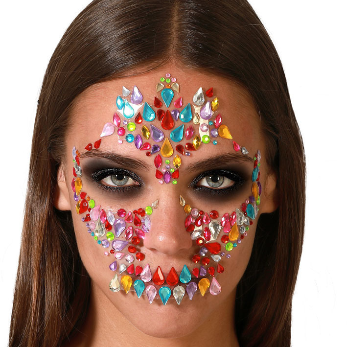 - Gemmes adhésives pour le visage formant un crâne