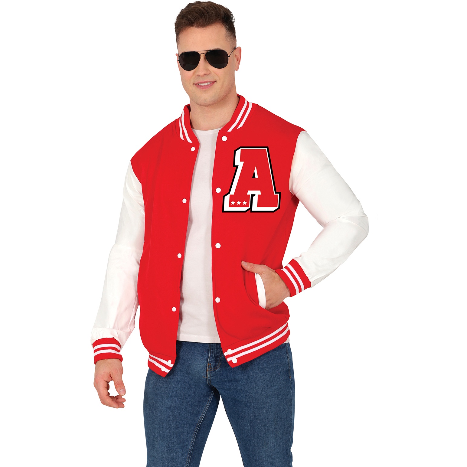 • Style varsity College saisissant en rouge vif avec contrastes blancs pour un look authentique.