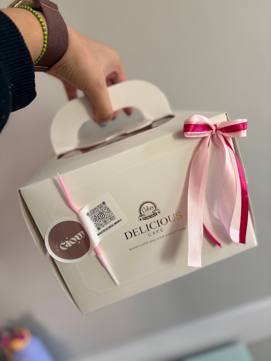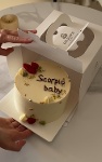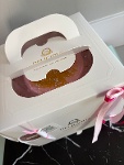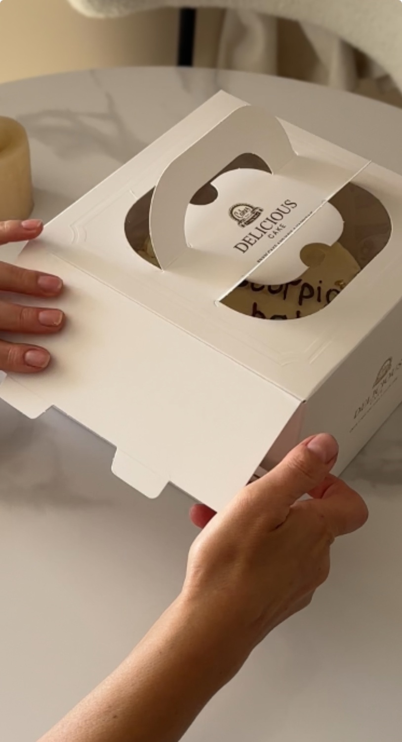Élégante boîte en carton rigide, parfaite pour transporter et présenter des gâteaux, pâtisseries et autres créations de boulangerie.