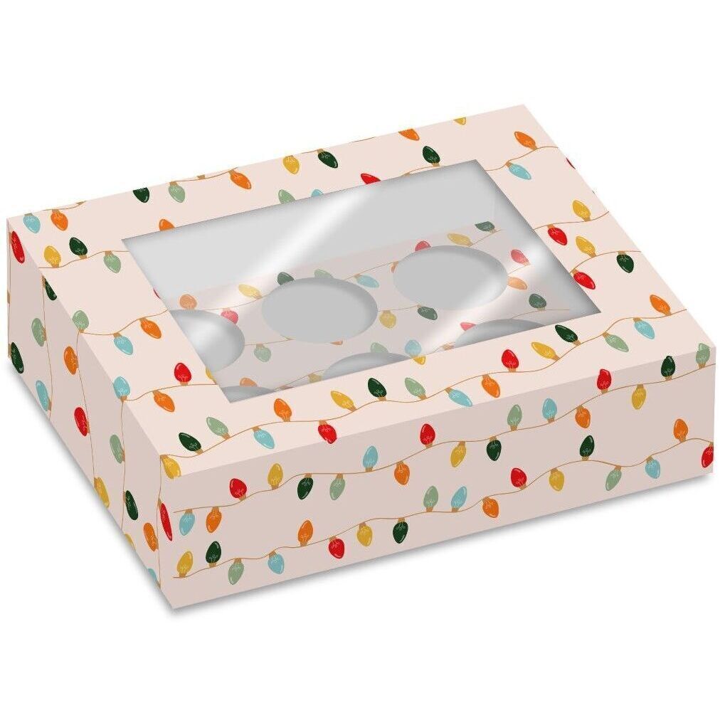 Boîte pour 6 cupcakes Lumières de Noël - 2 unités