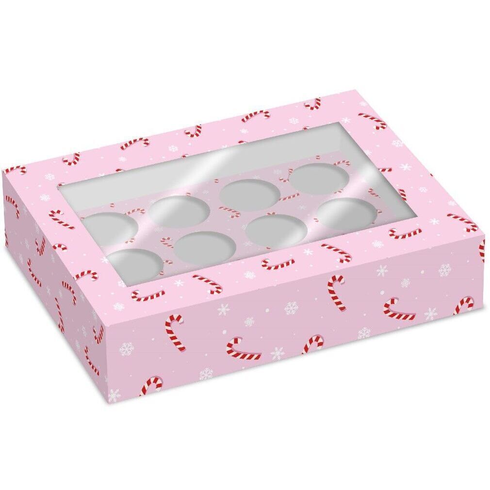 Boîte pour 12 cupcakes motif bâton de sucre d'orge - 2 unités