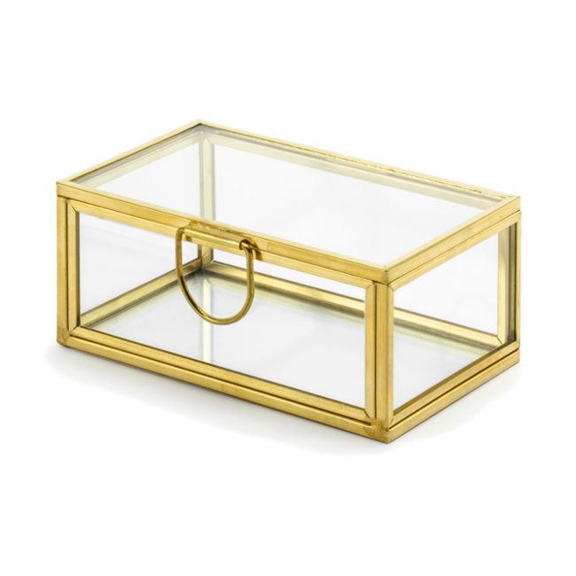 Cette boîte est fabriquée en verre transparent avec des bords métalliques de couleur dorée. C'est un article original qui vous servira même de cadeau pour une journée spéciale.