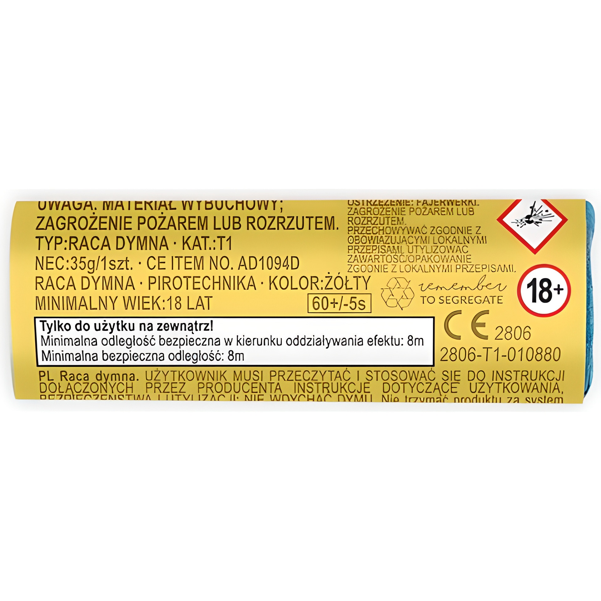 - Fumée dense d'un jaune intense pour des effets visuels spectaculaires.