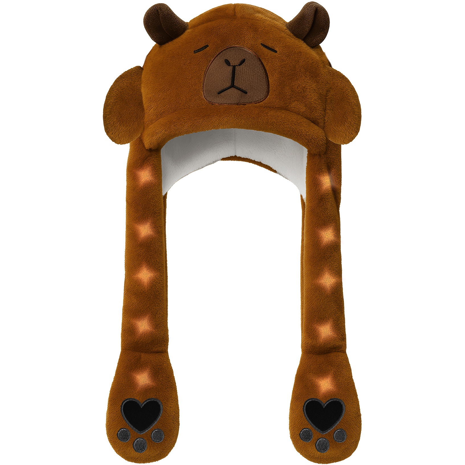 Bonnet ludique inspiré du capybara, doté de LED et d'un mécanisme d'animation intégré. Il présente des oreilles et de longs pans rembourrés qui apportent une touche chaleureuse et originale. Les LED créent des scintillements visibles qui subliment n'importe quelle tenue, et le mécanisme interactif met les oreilles en mouvement lorsque vous l'actionnez. Idéal pour compléter un look de fête, réaliser des séances photo ou offrir un cadeau original aux amateurs d'accessoires amusants.
