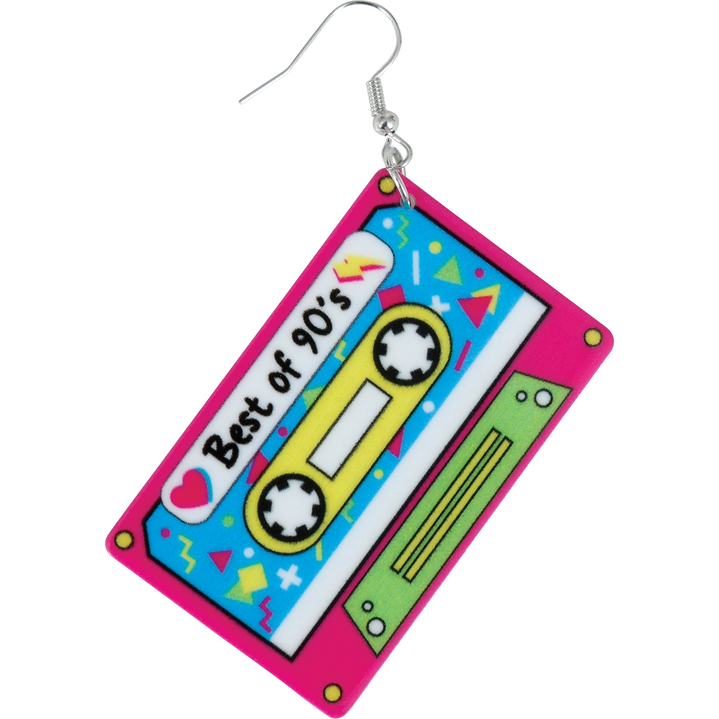 Boucles d'oreilles en forme de cassette, inspirées de l'esthétique pop des années 90. Leurs couleurs vives et leurs détails recréent l'aspect d'une cassette classique pour un rendu vintage et amusant. Confectionnées en métal et PVC, elles sont légères et confortables à porter. Fermoir à crochet facile à enfiler - un design accrocheur qui sublime instantanément vos tenues.