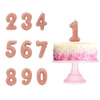 Bougie numérotée rose de 7 cm