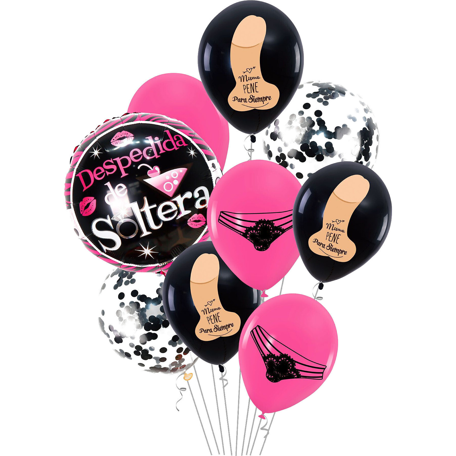 • Contient 9 ballons, 8 en latex et 1 en feuille métallique.