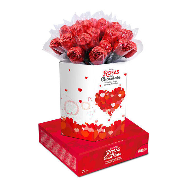 Bouquet original de 20 roses en chocolat qui vous permettra de donner une touche unique à votre décoration ou d'agrémenter vos desserts et friandises à thème.