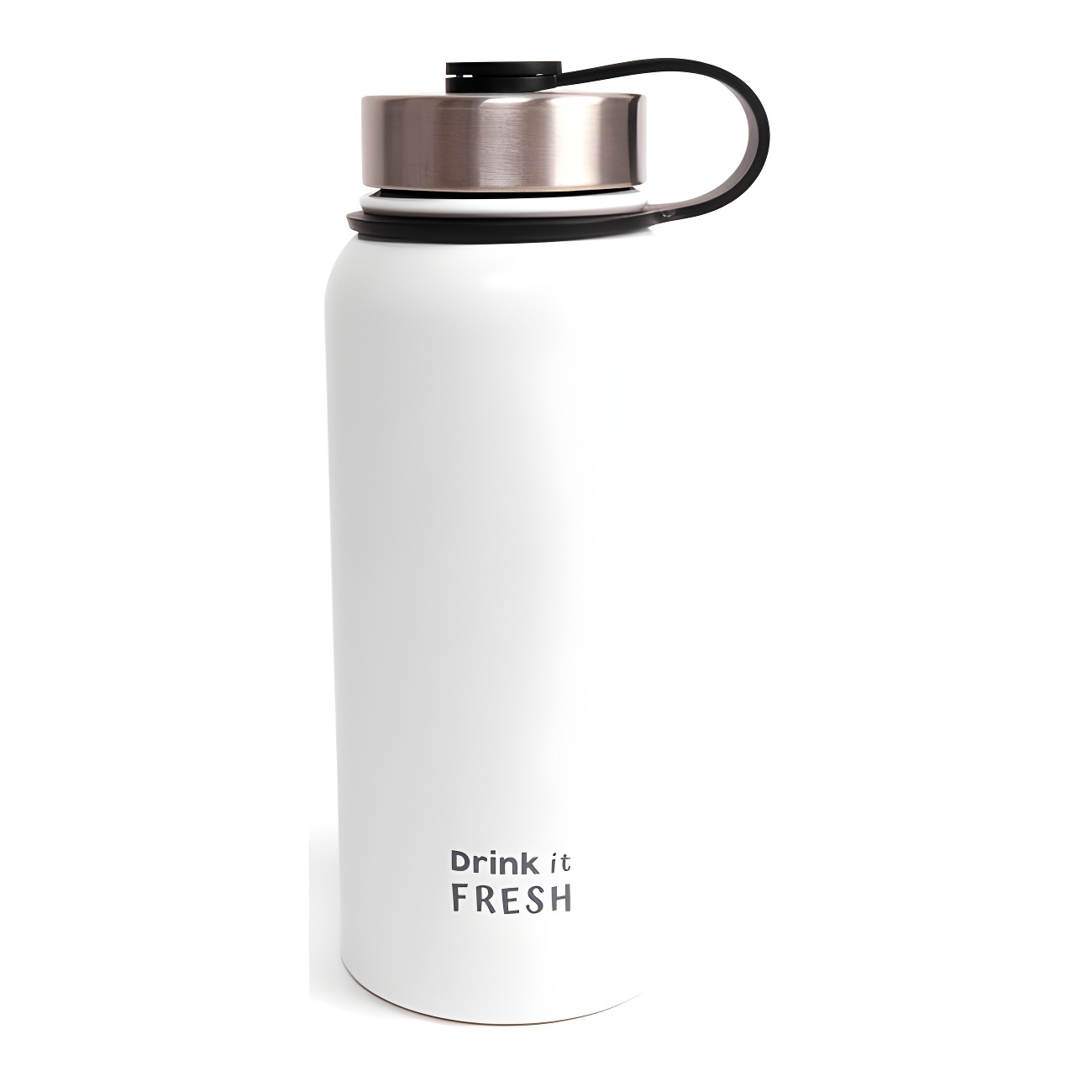 • Bouchon à vis attaché à la bouteille par une sangle en plastique