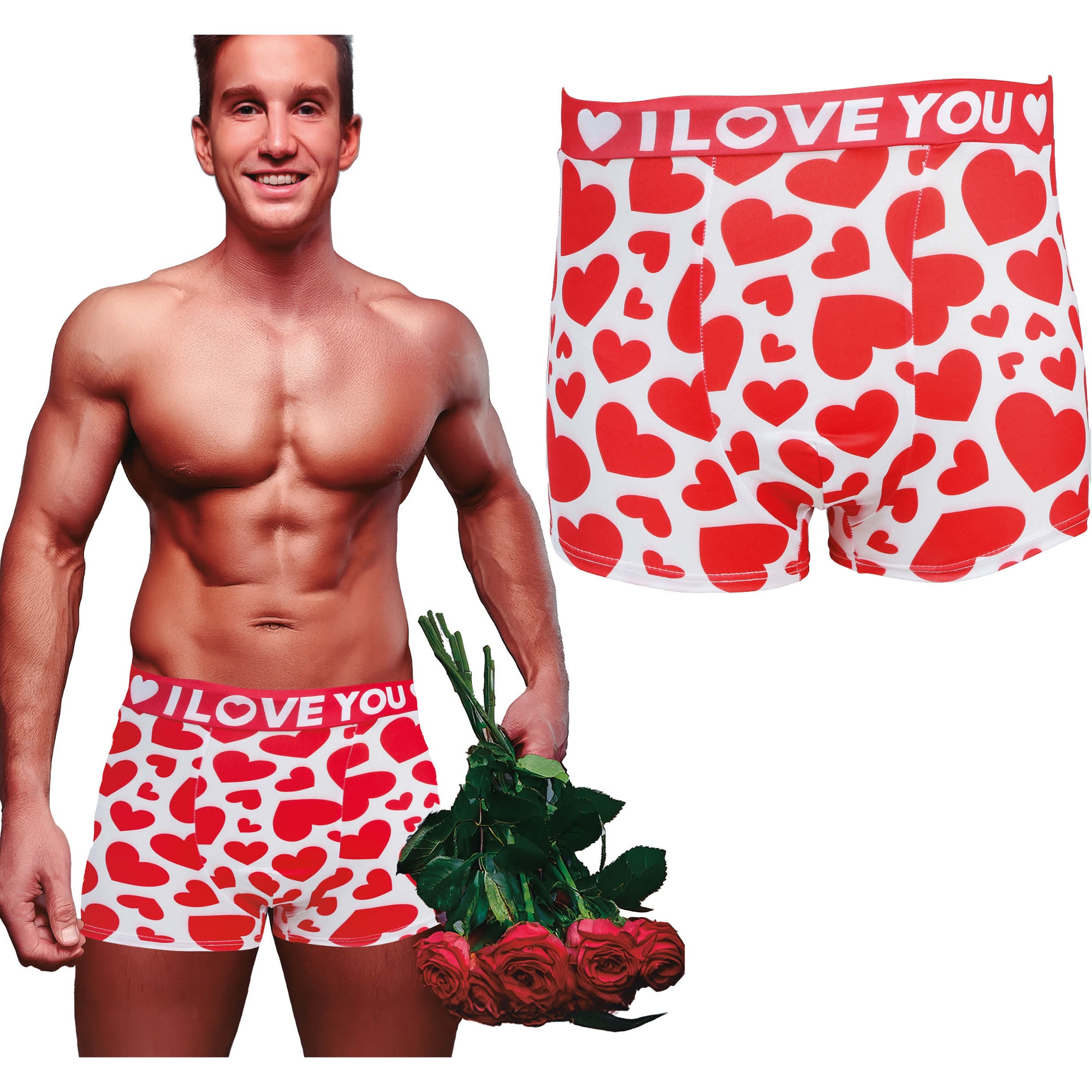 Boxers I Love You au motif de coeurs rouge et blanc, pensés pour vous surprendre lors de la Saint?Valentin et des occasions romantiques. Leur bande marquée portant l'inscription « I LOVE YOU » apporte une touche à la fois ludique et sentimentale.