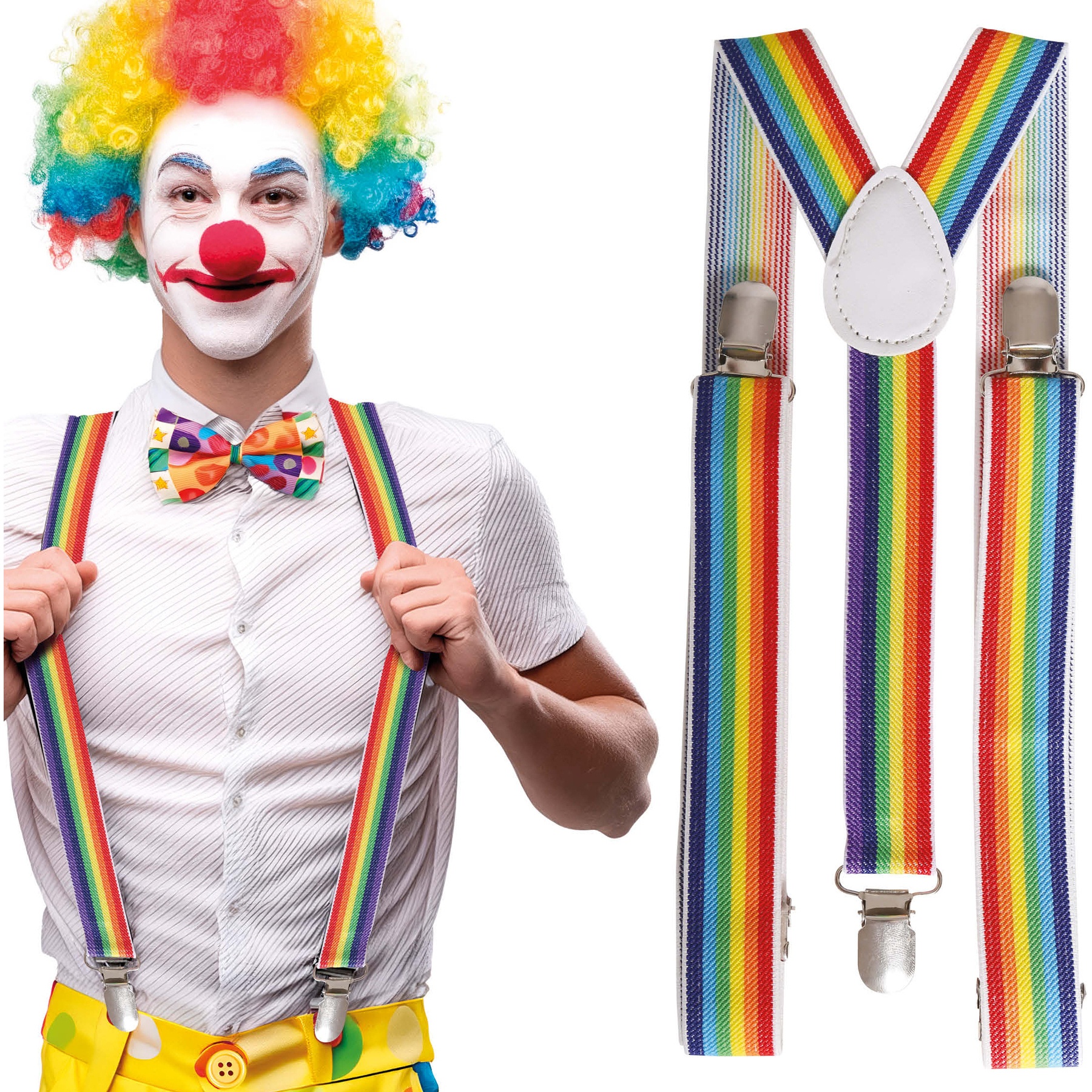 Des bretelles très colorées avec un design à rayures verticales aux couleurs de l'arc-en-ciel.