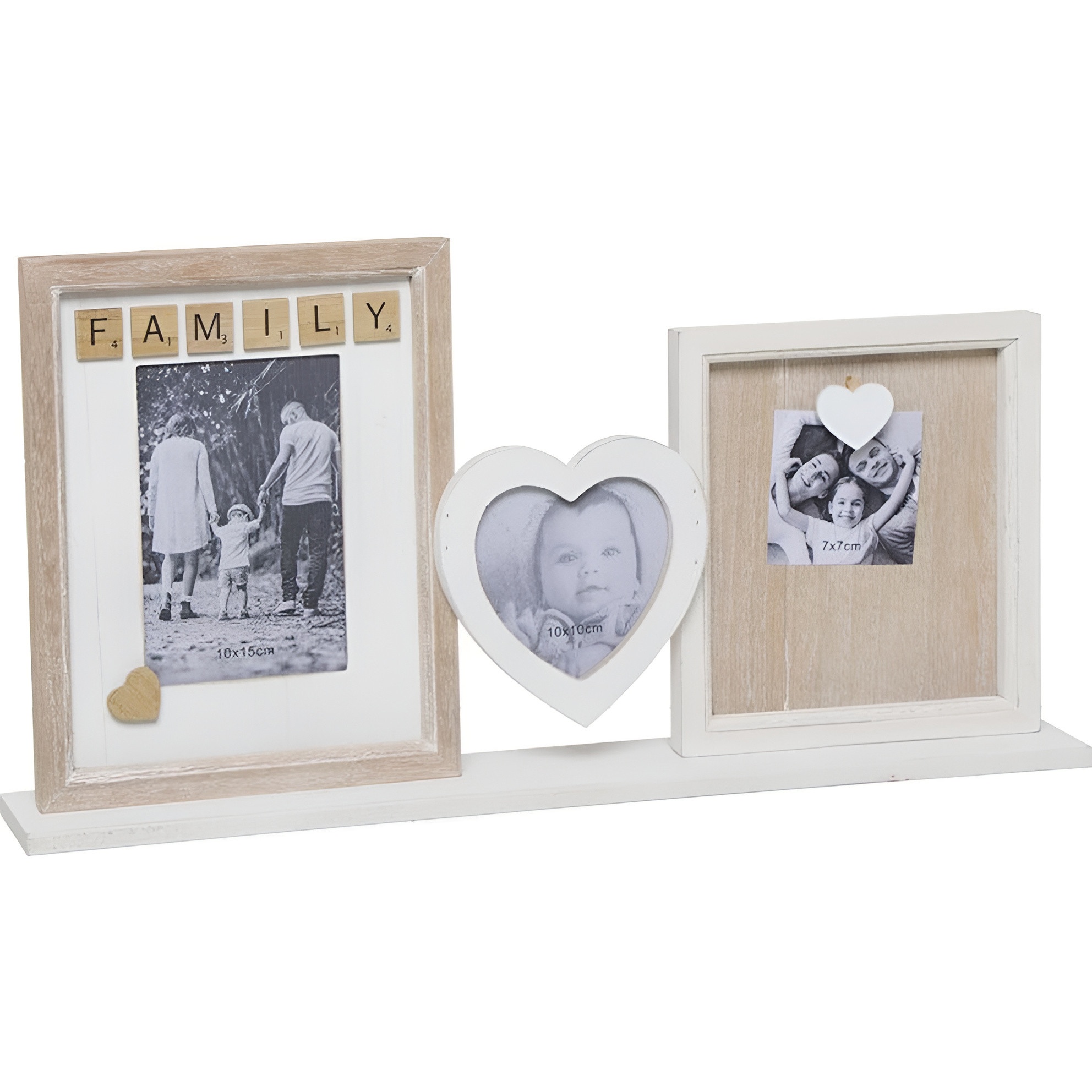 Cadre photo multiple au design familial qui associe lettres décoratives et coeur central pour mettre en valeur vos souvenirs les plus précieux.