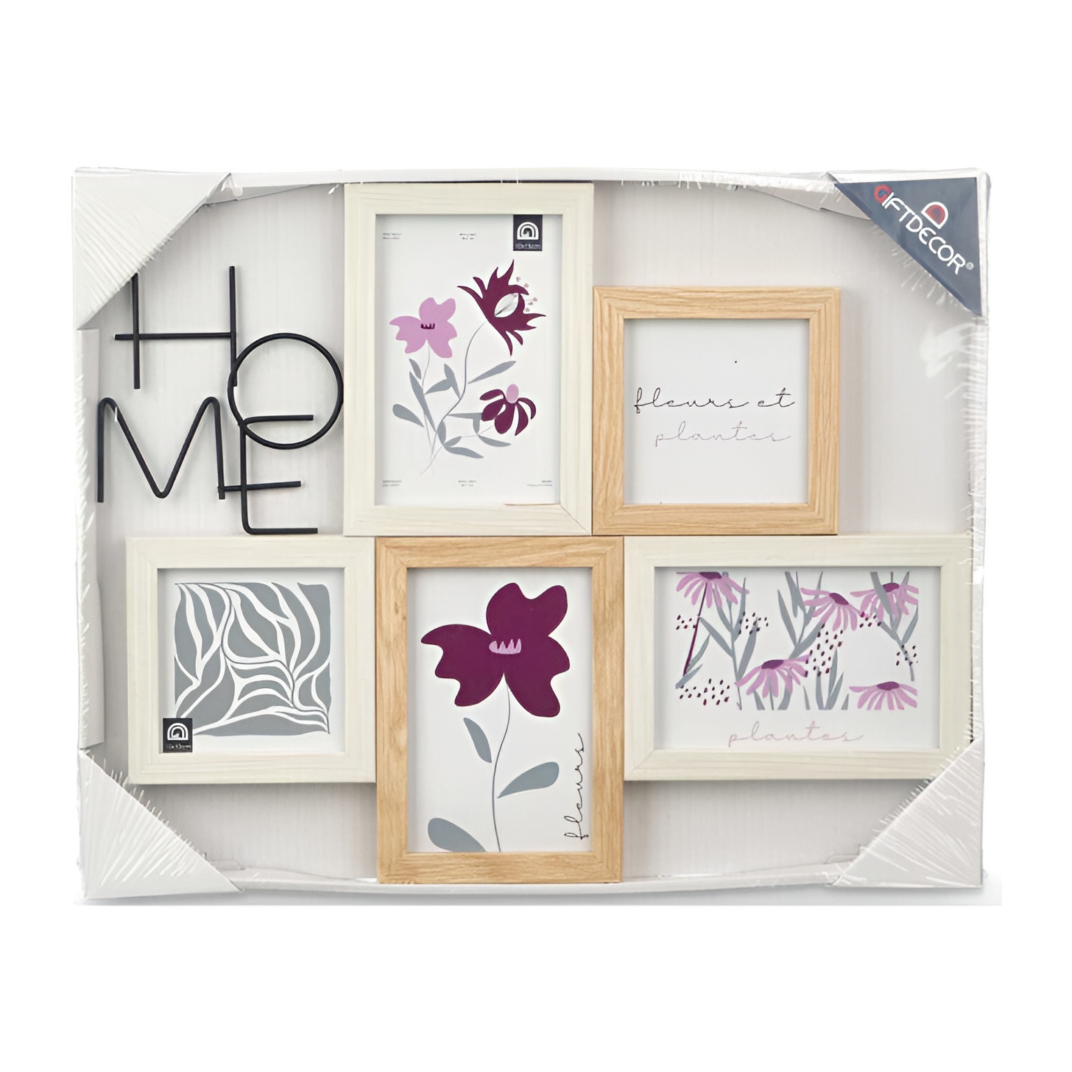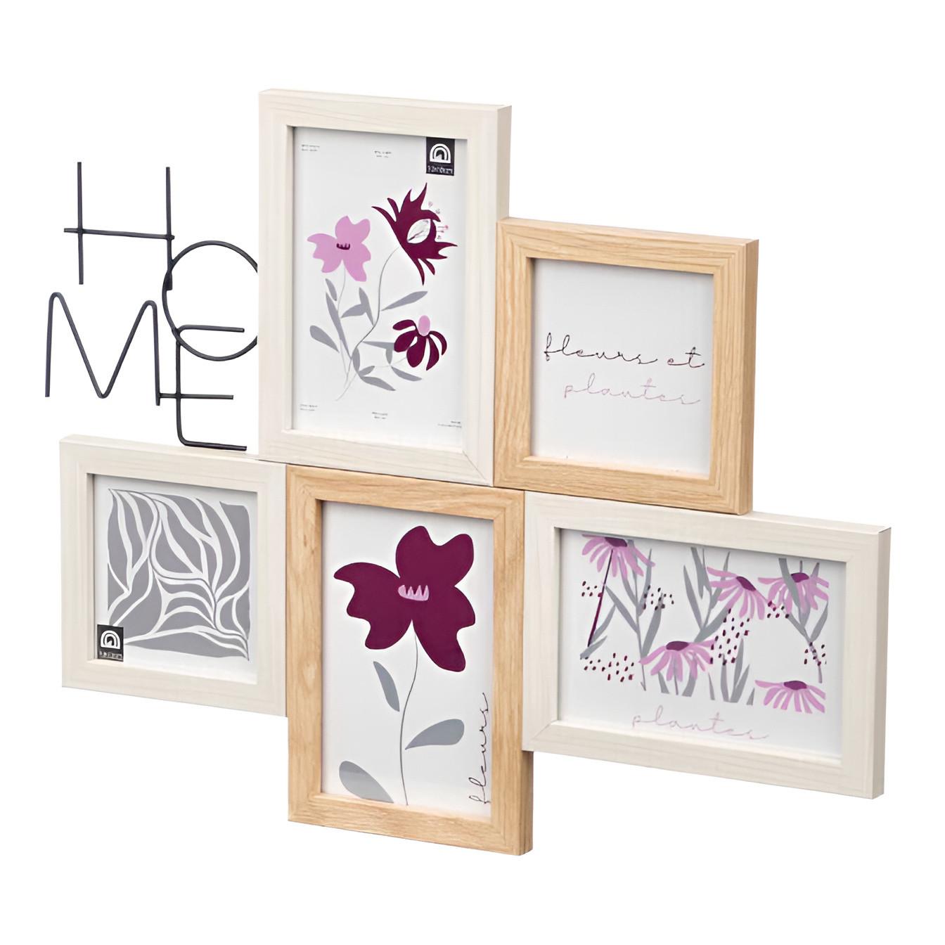 Cadre porte-photos avec enseigne « HOME » pour 5 photos