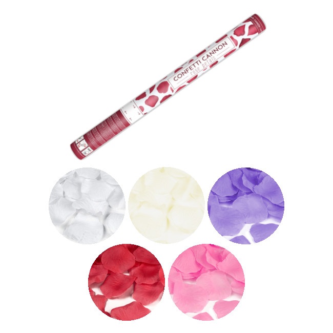 - Contenu en confettis de papier en forme de pétales de couleur grenat, rose, crème ou blanc.