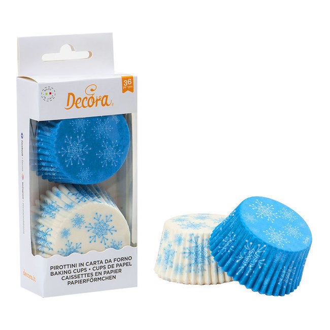 Capsules pour cupcakes blanches et bleues avec flocons de neige - Décora - 36 unités