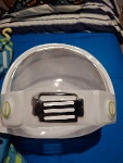 Important: ce casque est un produit très économique composé de deux pièces en plastique fin, qui s'assemblent avec des velcros à coller soi-même avec de la colle ou un adhésif, les deux parties peuvent ne pas s'emboîter parfaitement pour fermer complètement. De plus, il peut y avoir des imperfections sur la visière en plastique, ainsi que sur le reste du casque.