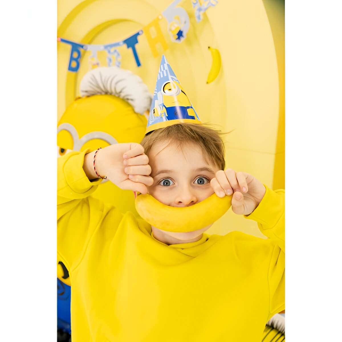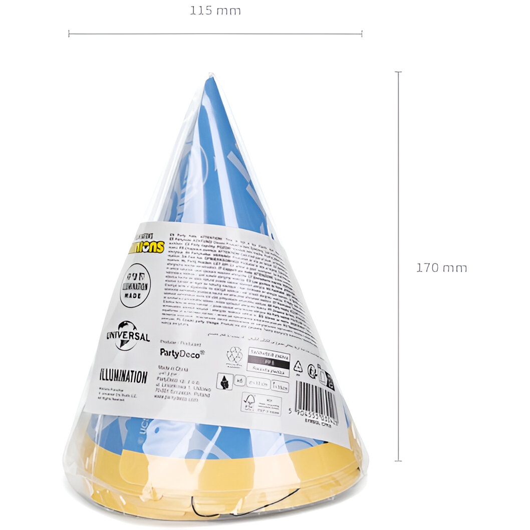 Chapeaux côniques officiels Minions, imprimés dans des tons bleus mettant en scène les personnages les plus emblématiques. Pensés pour les plus jeunes: légers, confortables et de silhouette classique, faciles à enfiler. Idéaux pour animer les anniversaires d'enfants et les séances photo à thème. Produit sous licence officielle qui apporte une touche ludique et reconnaissable à vos célébrations.