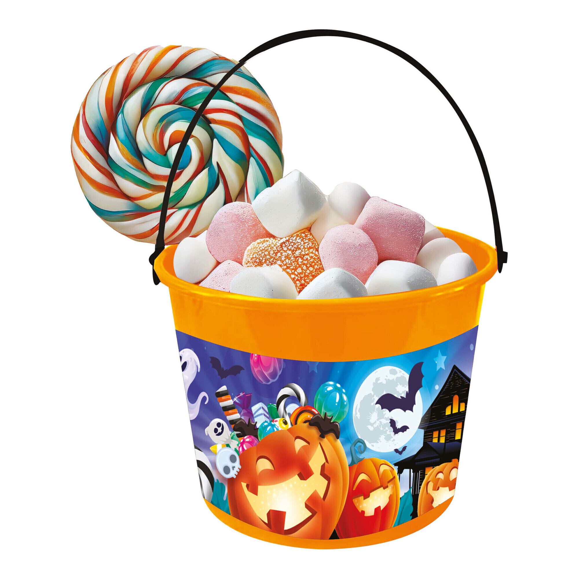 Chaudron orange avec citrouilles et fantômes