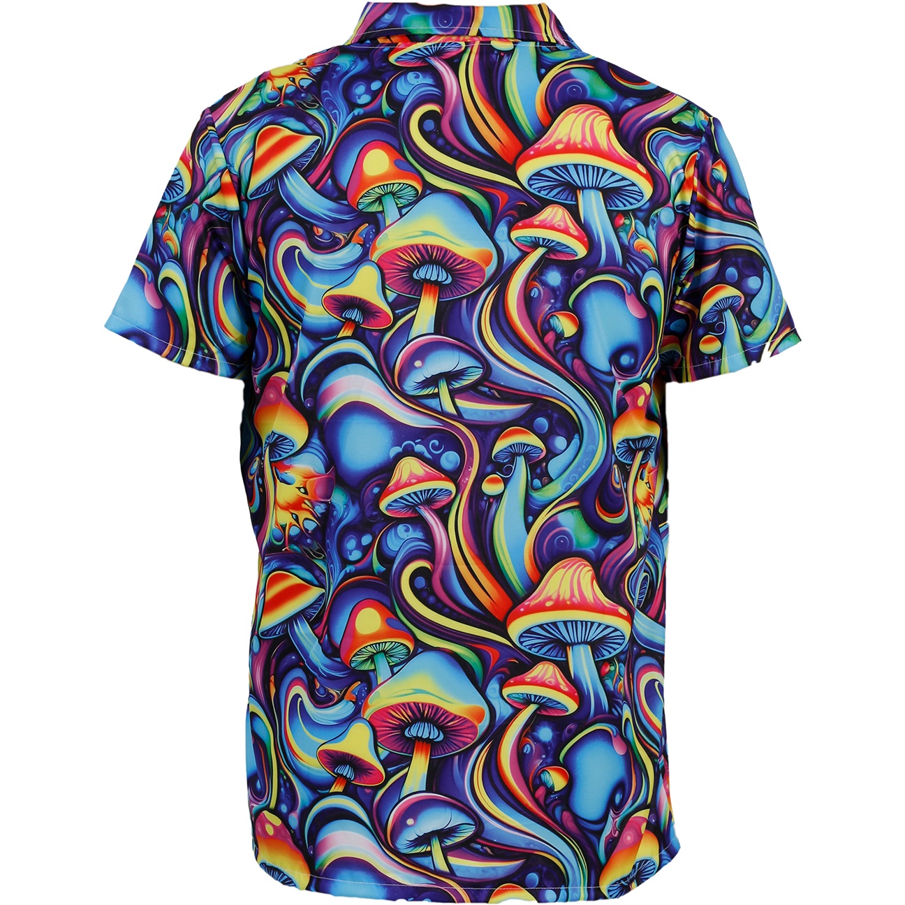 Chemise à motif psychédélique de champignons multicolore, remarquable par ses formes fluides et ses couleurs intenses: un design inspiré des codes psychédéliques qui apporte une touche audacieuse et festive à votre tenue.