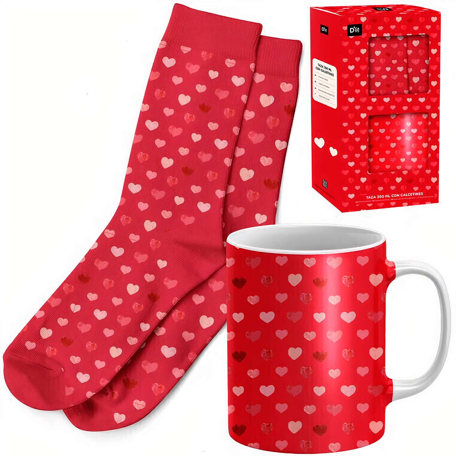 Coffret cadeau - mug et chaussettes motif coeurs