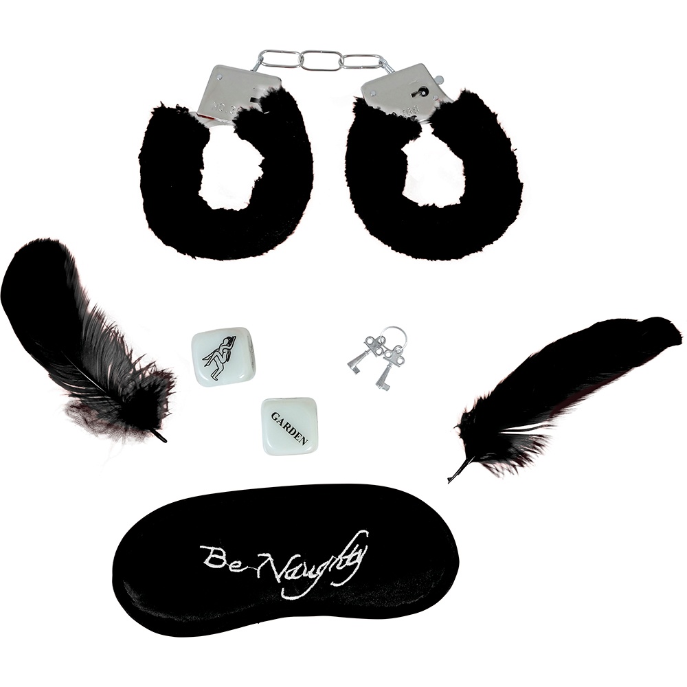 Coffret érotique: masque, menottes, plumes et dé