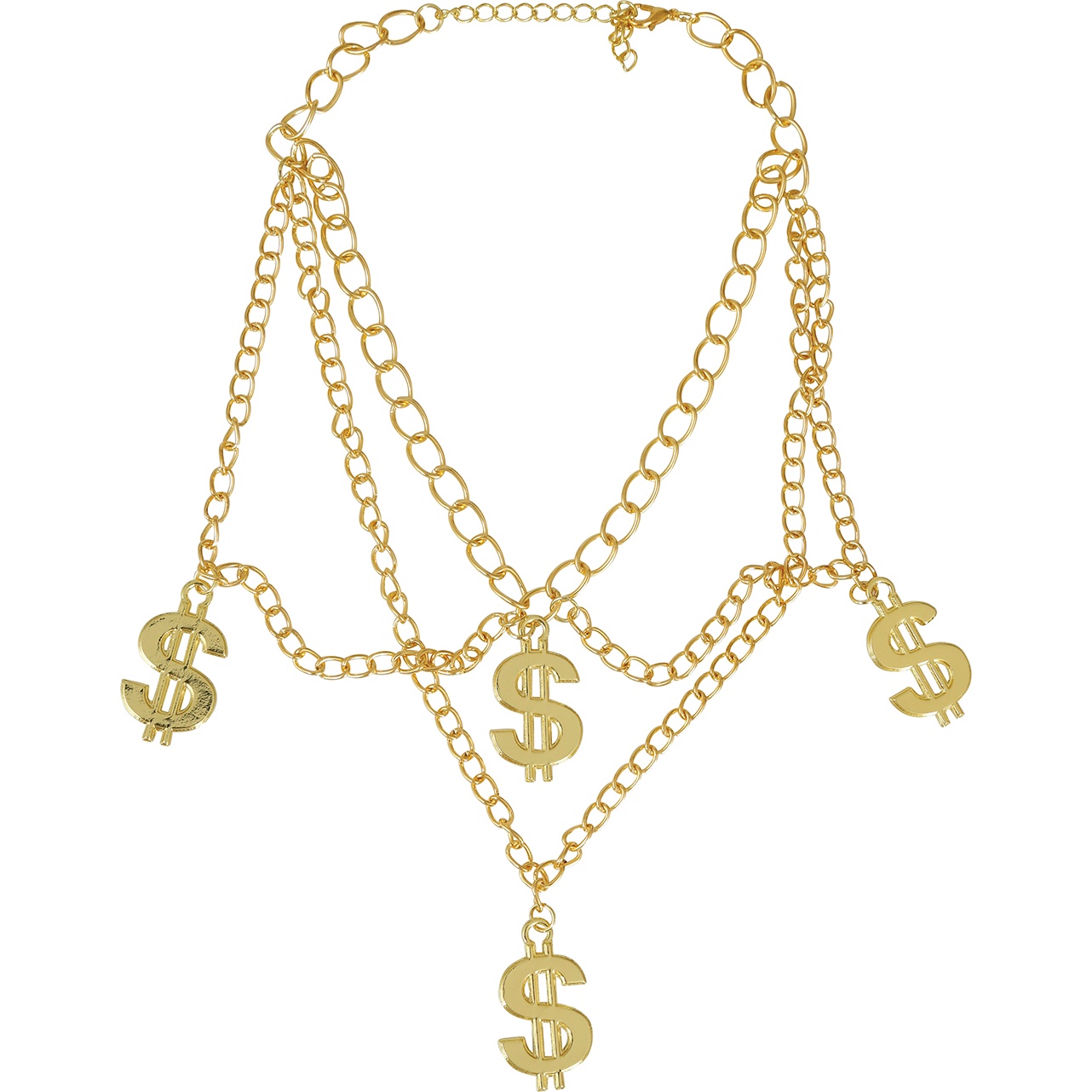 Collier 4 signes dollar apporte une touche bling et une attitude urbaine grâce à ses multiples chaînes et pendentifs en forme de signe dollar. Son design en couches crée un effet volumineux et remarquable qui complète parfaitement un look festif ou hip?hop.