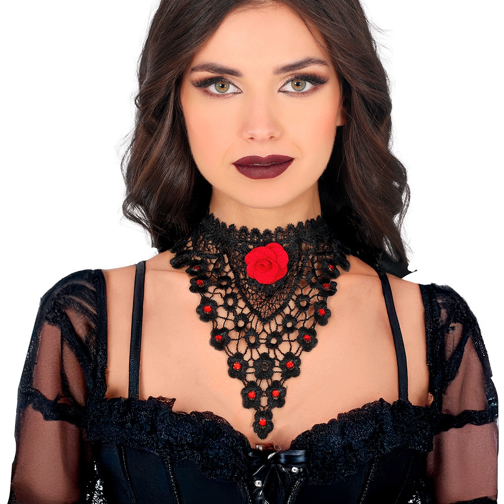 Collier avec rose rouge brodée