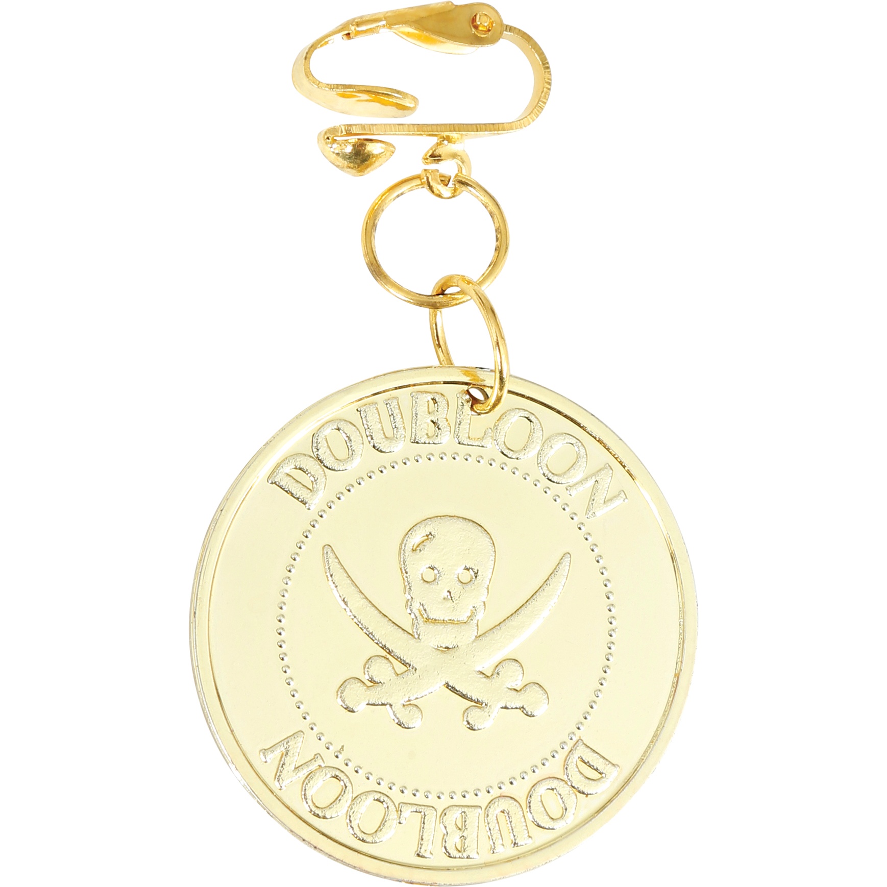 Ensemble collier et boucles d'oreilles à pièces de style pirate, conçu pour femme adulte. Il présente une finition dorée simulant d'anciennes monnaies et apporte une touche théâtrale et saisissante à votre tenue. Fabriqué en PVC léger pour vous assurer un port confortable pendant fêtes et événements. Parfait pour le Carnaval et les fêtes à thème, il confère du caractère à tout costume de pirate. Se combine aisément avec chapeaux, chemisiers et autres accessoires de déguisement.
