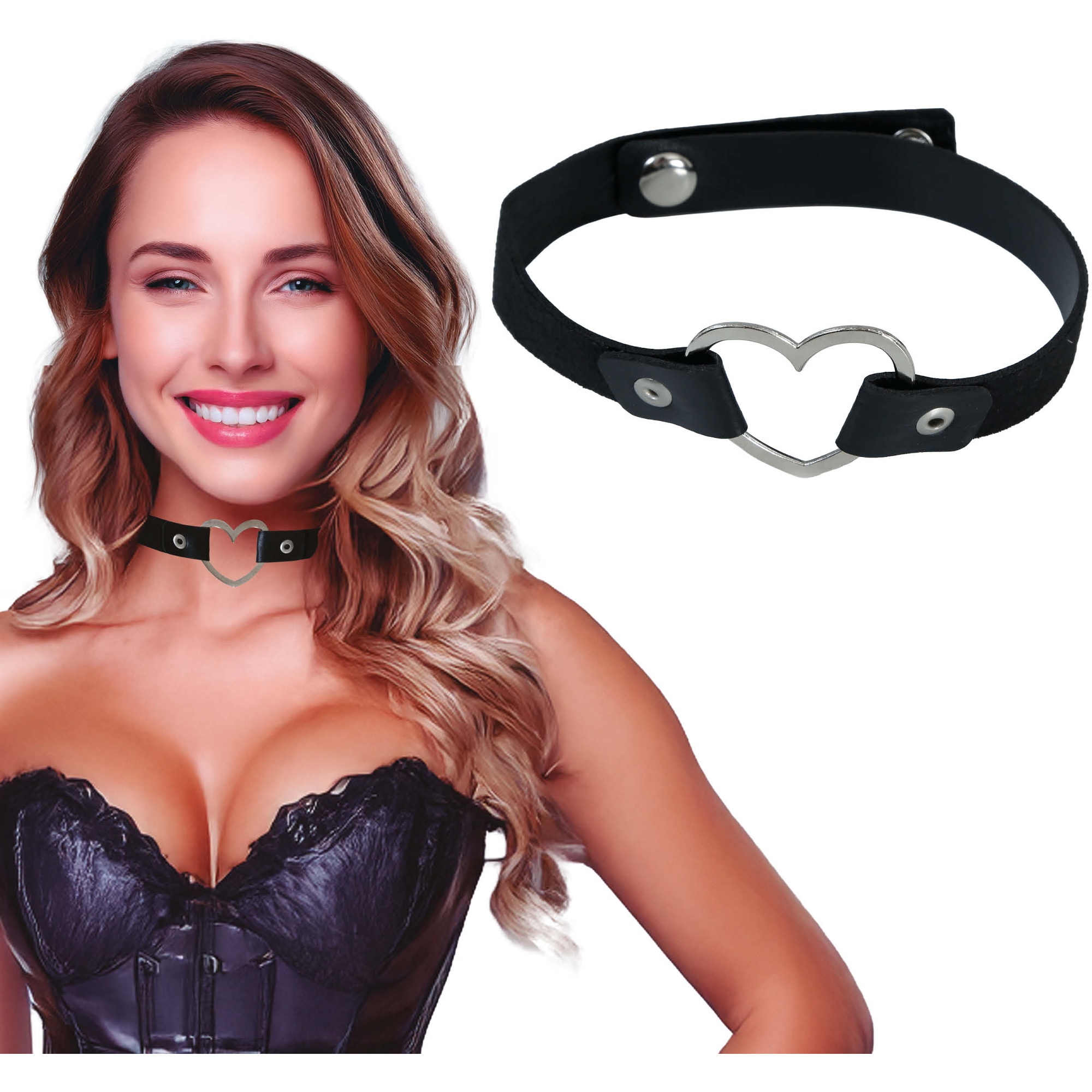 Conçu pour les enterrements de vie de jeune fille et les soirées spéciales, ce ras-du-cou sado arbore un coeur métallique central qui apporte une touche audacieuse et élégante. Sa bande réglable à boutons-pression garantit un maintien sûr et confortable. Accessoire sensuel, il sublime votre lingerie et complète vos looks intimes.