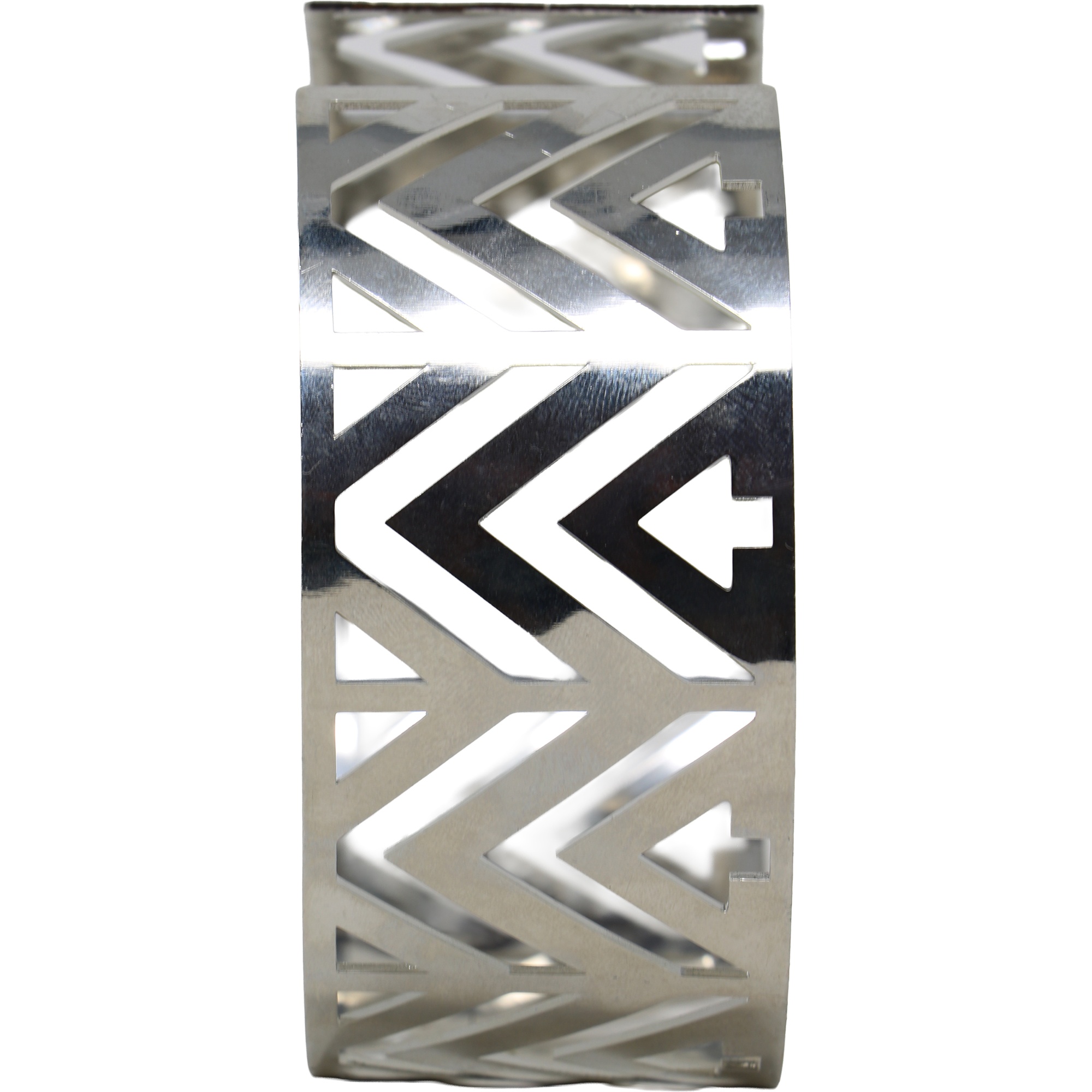 • Design rigide et géométrique avec finition métallique réfléchissante pour un look futuriste.